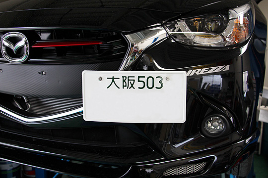 デミオ(DJ)オフセットナンバーステー 品番:DJ012 価格:7800円(税別) 材質:SUS304 付属品:ボルト、取り付け用工具(17角棒)