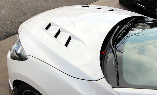 雨水は裏側を通しエンジンルームに侵入し難い構造です。 純正に比べ軽量化を実現します。
