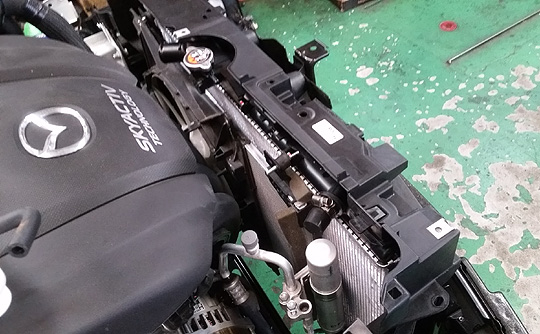 ※加工が必要ですので、プロショップでの作業をお薦めします。 エアコンコンデンサーがラジエター後ろに配置されます。