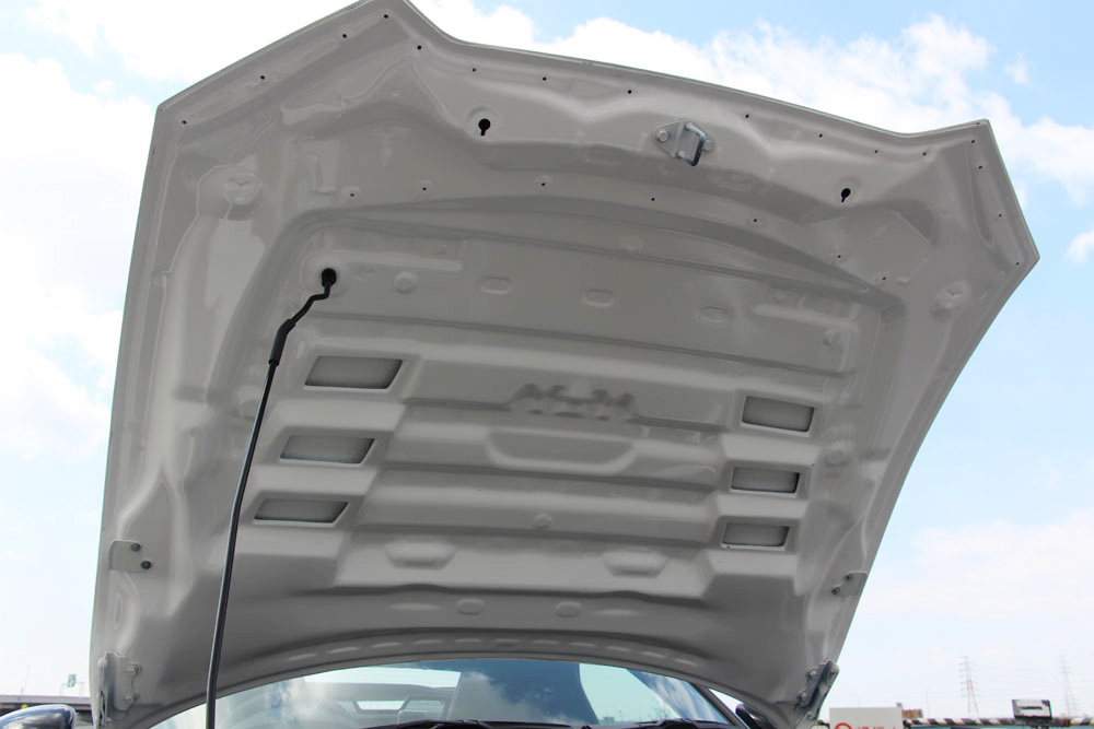 エンジンルームの熱気を抜きながら雨水は侵入させない構造です。