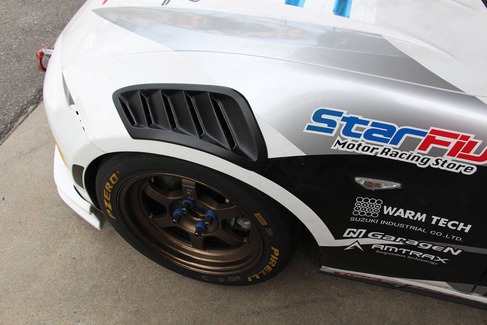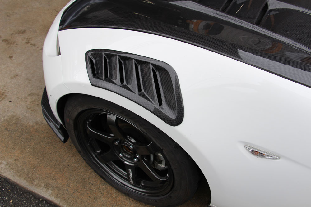 走行中のフロントタイヤハウス内は正圧になりやすく、圧力を抜く事により抵抗を少なくします。