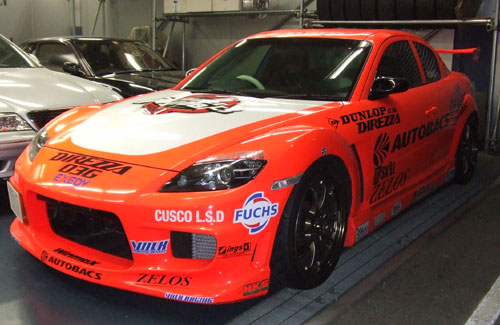 全日本ジムカーナ選手権に出場中のオートバックスRX-8にも装着していただいております。 たくさんのテスト結果の中からラムエアインテークを装着していただいております。
