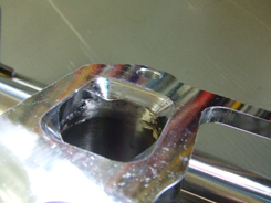 フランジ接合部は割れを予防する為に、パイプをポート形状に合わせて四角にせずに、