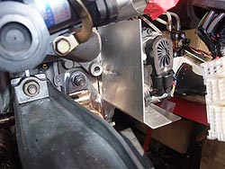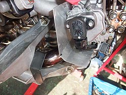 エキマニ近くにメタリングオイルポンプがあり、排気熱により本体やオイルホースに熱影響を与えるのを防ぎ、油温上昇も抑えます。