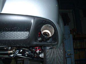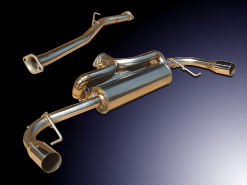 触媒後交換で、メイン70Φ→50Φ2分割→出口80Φで、隣接俳気音91db(アイドリング時67db)です。(集合部分が路面側)