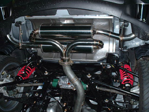 また、重たいサイレンサ−を車両中心部に配置する事により、慣性モ−メントを低減し理想的なコ−ナ−リングを実現します。